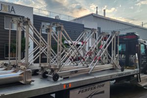 Il y a quelques semaines, notre équipe a procédé à la livraison de 8 bossoirs chez un client, un projet d’envergure qui permettra d’assurer des interventions en hauteur sécuritaires et conformes.